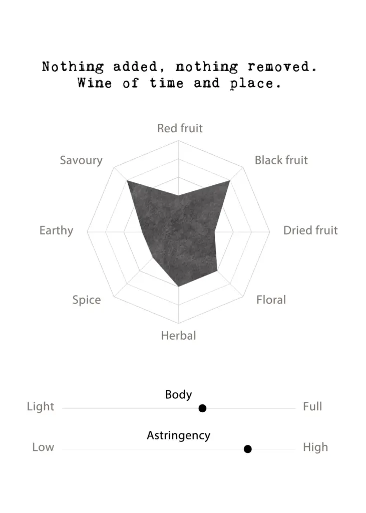 Nothing added, nothing removed. We follow low-input, low-intervention farming and embrace hands-off natural winemaking. Nothing is added and nothing is taken away, except for a minimal dose of sulphites at bottling (25–35 ppm, compared to the certified EU organic allowance of 100 ppm or VQA limits up to 250 ppm). This tiny addition ensures stability during transport, assuming proper cellar storage.